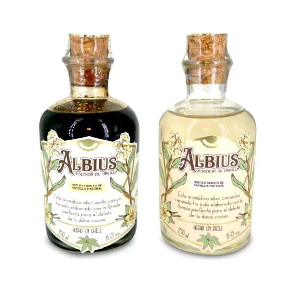 Prueba nuestra excelente Esencia de Vainilla Blanca y Negra Albius en formato individual de 250 ml.